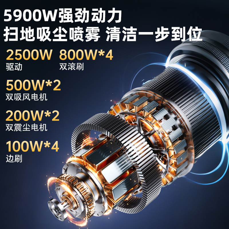 卓越清潔,一機(jī)搞定, 強(qiáng)勁雙吸風(fēng)電機(jī),風(fēng)量大、風(fēng)壓高,搭配大面積過濾系統(tǒng),吸塵徹底無死角,灰塵、碎屑一網(wǎng)打盡;強(qiáng)力降塵噴霧,大水箱支持長(zhǎng)時(shí)間霧化作業(yè),有效抑制揚(yáng)塵,打造潔凈環(huán)境;安全至上,智控護(hù)航;多重電控保護(hù):過流、欠壓自動(dòng)預(yù)警,下坡防超速、坡道防溜坡,搭配電磁剎車,復(fù)雜地形也能穩(wěn)如磐石;高清倒車影像:狹窄區(qū)域倒車無憂,避免碰撞,操作更安心。