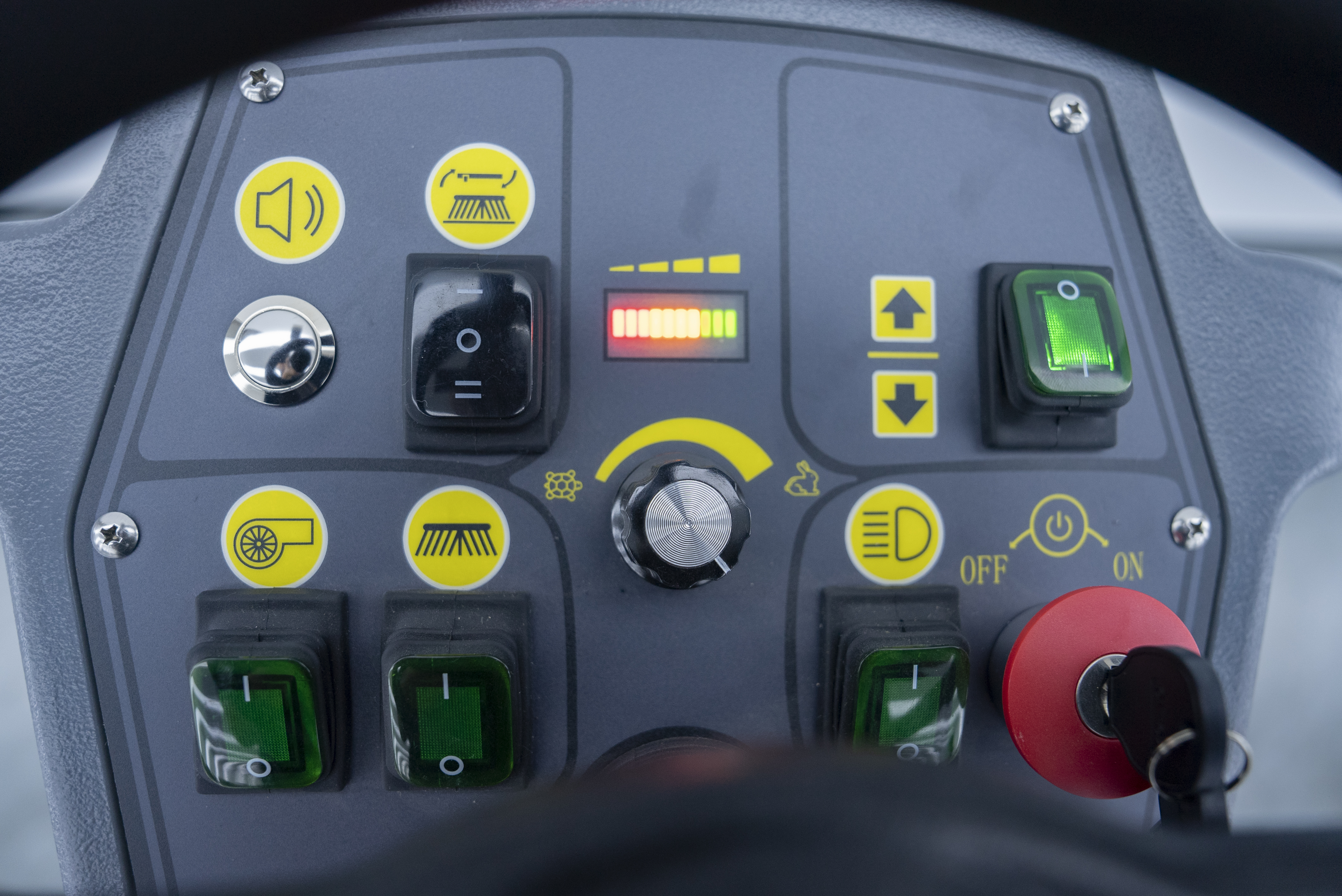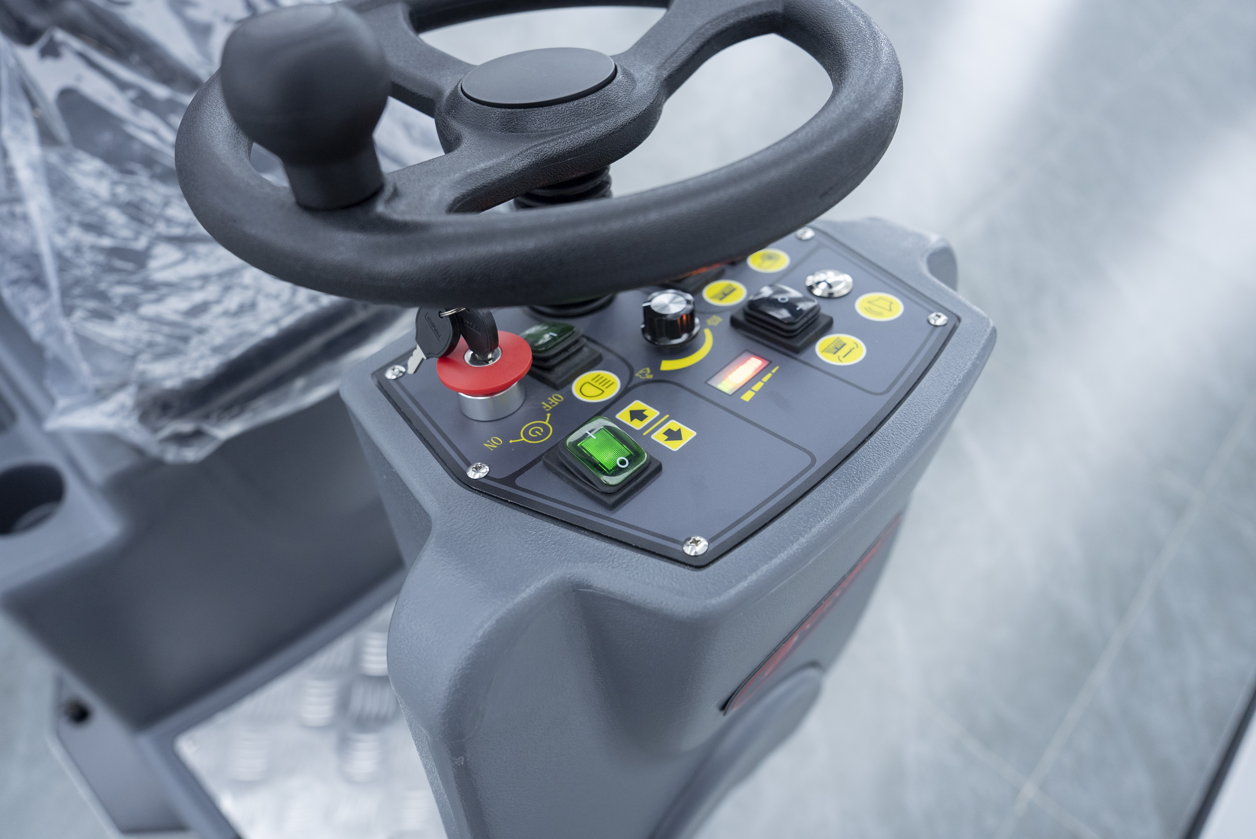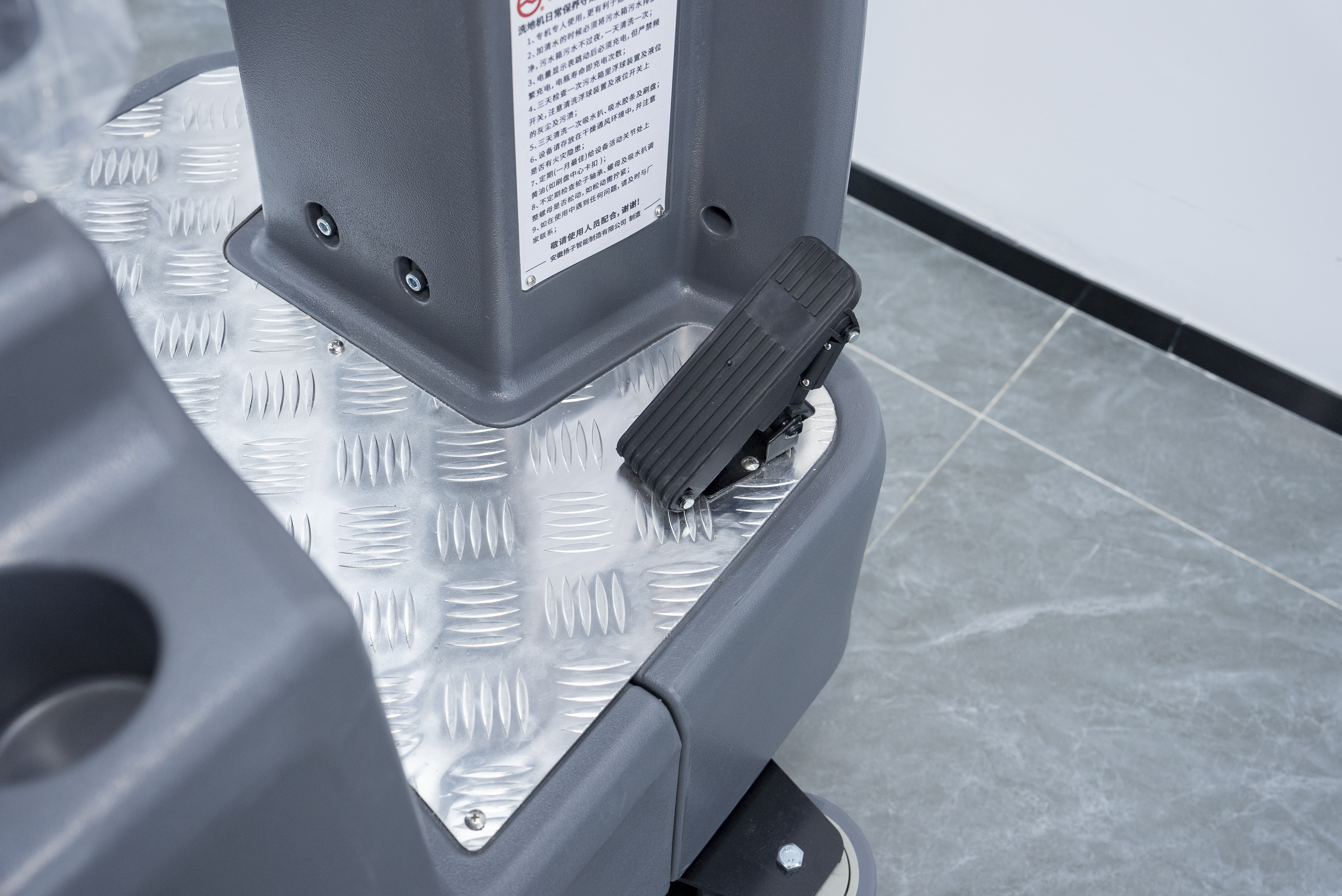 適配性:免維護(hù)款運(yùn)維便捷,續(xù)航實(shí)測(cè)4.5小時(shí),搭配160L大容量清水箱,中途補(bǔ)水即可完成全域清潔,無(wú)需頻繁充電;駕駛操作簡(jiǎn)單易上手,配備智能控制面板,操作人員經(jīng)簡(jiǎn)單培訓(xùn)即可上崗,貼合天臺(tái)總部原有洗地車操作習(xí)慣;機(jī)身采用加厚底盤,搭配適配金剛砂地坪的耐磨刷盤,不刮傷、不磨損地面,運(yùn)行平穩(wěn)無(wú)噪音,適配廠房狹窄通道及設(shè)備周邊清潔,爬坡度達(dá)15度,適配廠房不同區(qū)域地形。