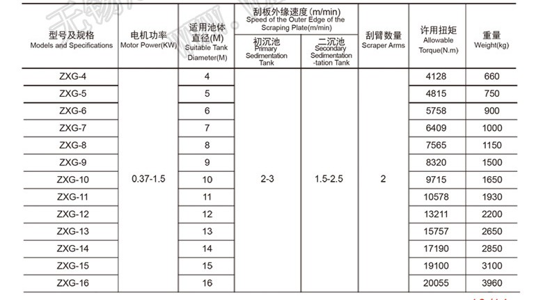 中心傳動刮泥機,適用于給排水工程水廠或污水處理廠直徑一般不大于19m的輻流式(圓形)沉淀池的污泥刮集和排除。