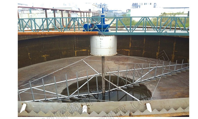 通過減速驅(qū)動和懸掛式組件的傳動,由刮板將污泥刮集到中心集泥槽,依靠凈水壓力或泵排出池外。采用中間進水和排泥,周邊排水,保證水流均勻,利用液位差自吸式排泥配有浮渣刮集排除裝置和過載保護裝置。